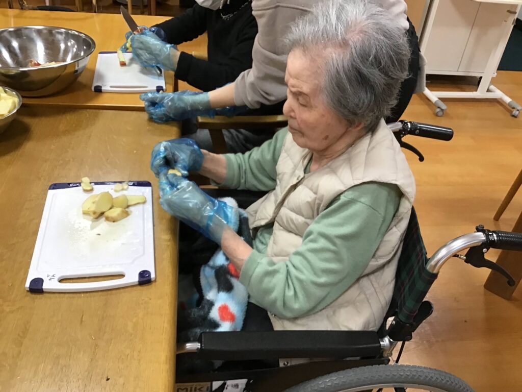 片手でも、自分でずっと食べることができない方でも、お芋のためならえんやこら。