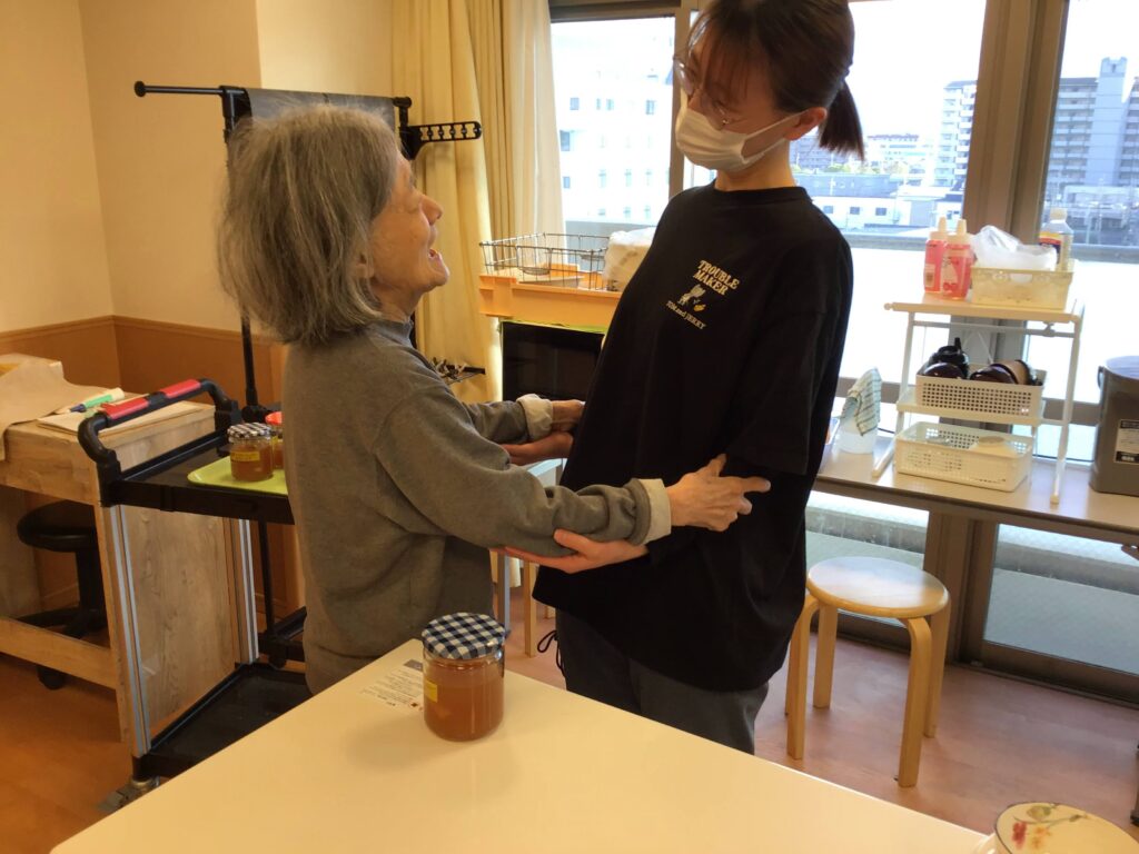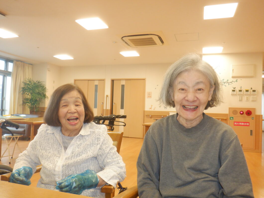 こうのとりでは日中館内は入居者様が自由に移動して頂いてますので、他の階の方もイベントはご自由に参加頂けます。この日は、ユニットリーダー実習生さんも来られていたので、その後様子に驚かれたみたいです。