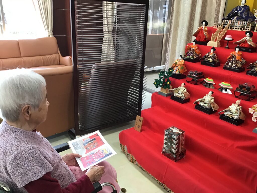 これ以外にも、お雛様のお飾りも職員と入居者様にて行ってもらっています。