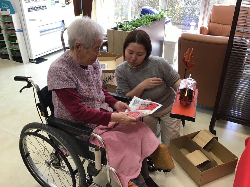 飾りなども沢山あって、一人ではなかなかできないので入居者様にも毎年手伝ってもらっています。
