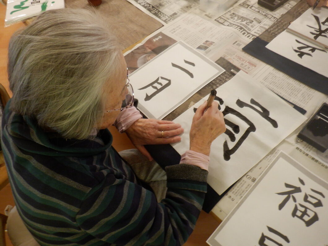 毎月開催の習字教室ですが、本日はすこーし参加者が少な目。