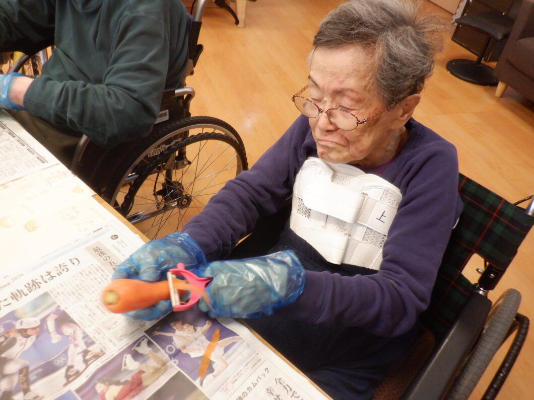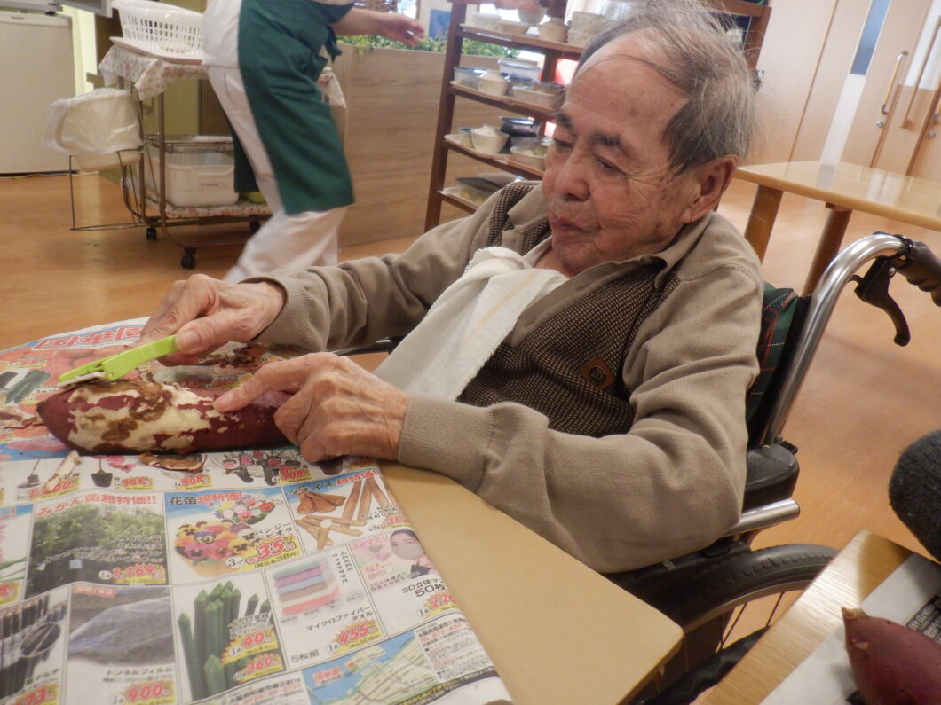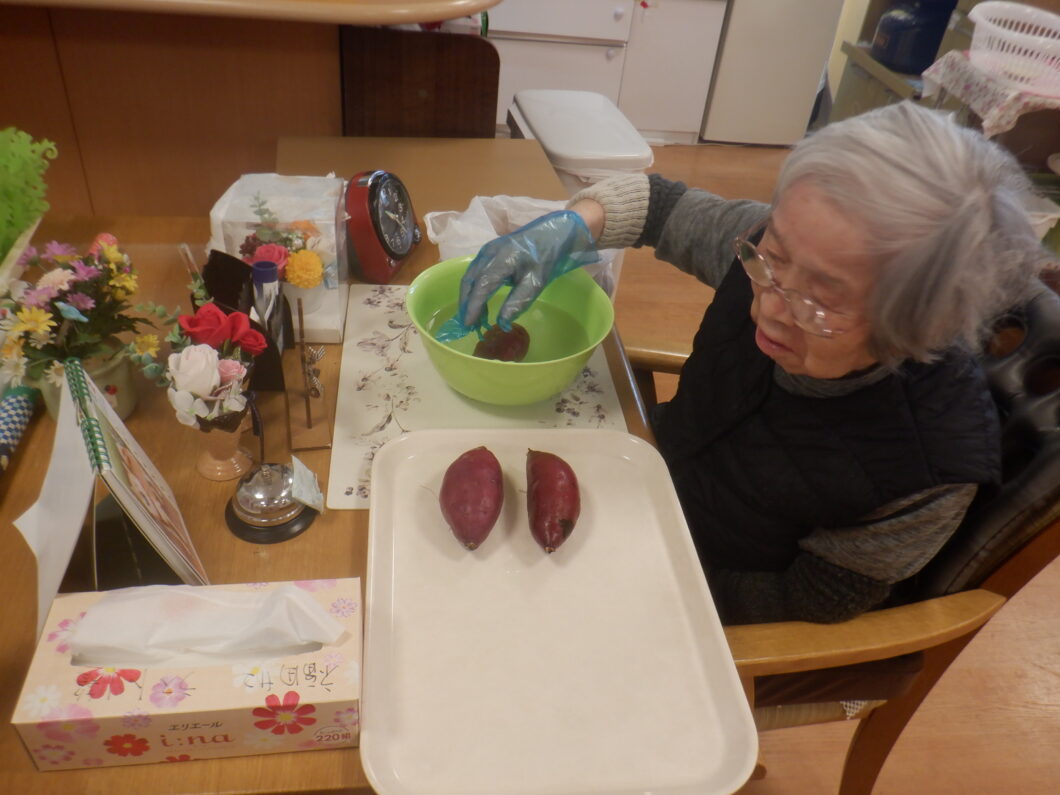 本日も、「これを洗うの」「おいしそうな芋やね」とワクワクしながら準備されておられます。