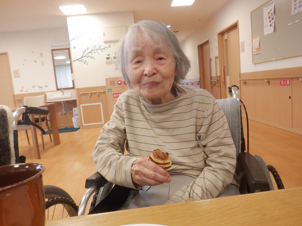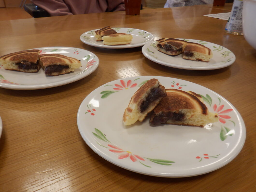 先月はクレープ作りを行われましたが、今度は何をしようかと考えていたところ、クレープの派生としてどら焼きも出来るんじゃない?となり、入居者様に確認したら「食べたいな」と。