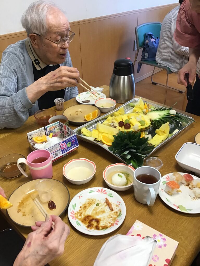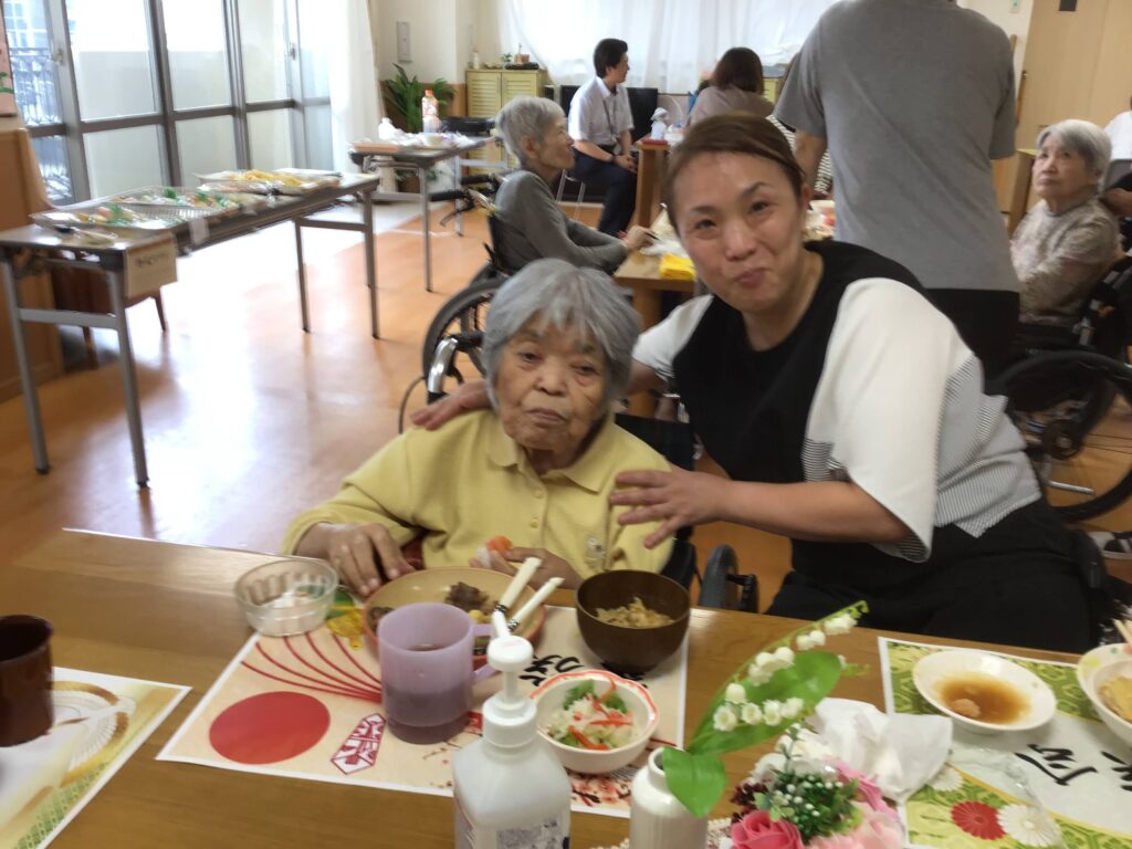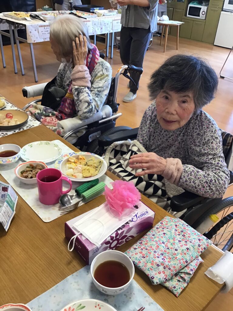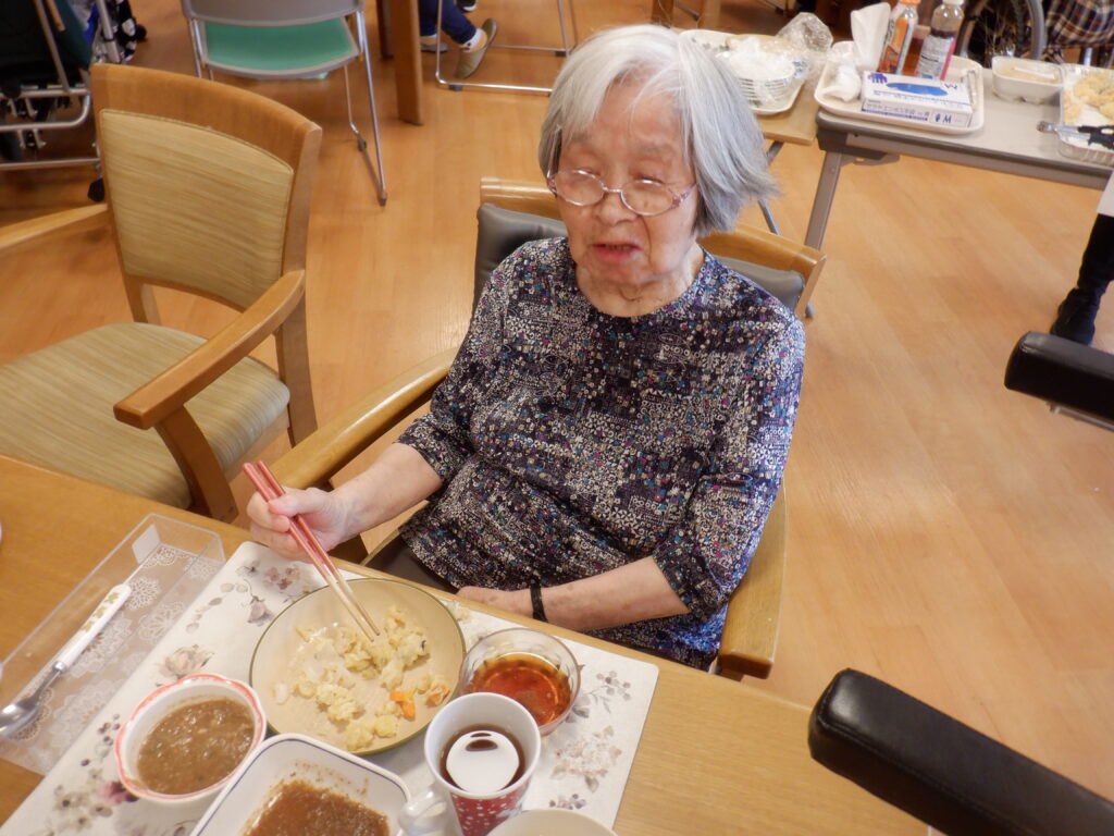 和気あいあいと職員・入居者様にて召し上がって頂きました。「すごい楽しかったです。食べながらお話する機会はなかなかなかったので」と職員もご満悦。