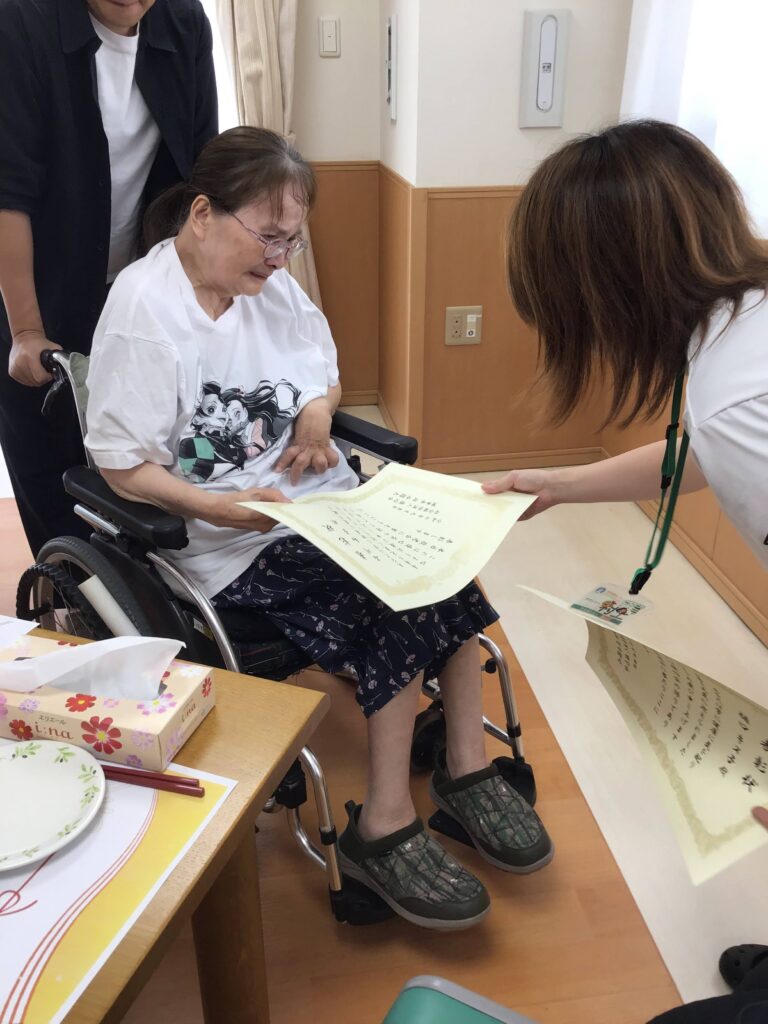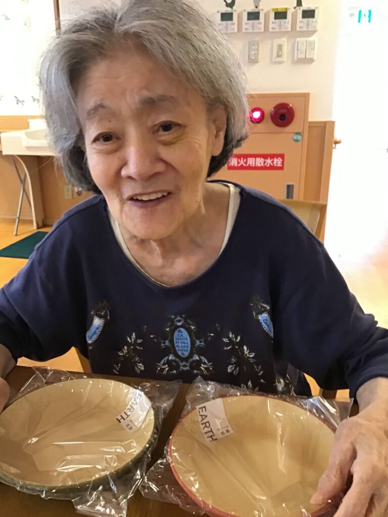 施設より敬老のお祝いもさせていただき、この日のために使用するといっても過言ではない、お皿を皆様に贈呈。