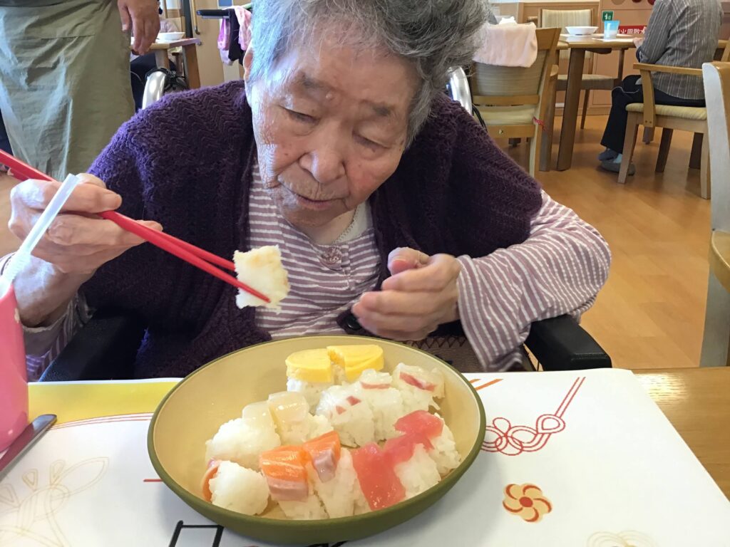 管理栄養士中心に、お食事は塩梅様と相談して下さり、お寿司やてんぷらのメニューは入居者様に相談して決めて頂きました。