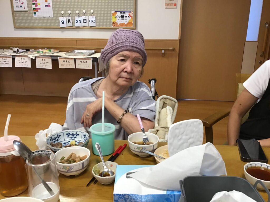 日頃は結構刻んだり・○○禁止だったりと、食事の種類が決まっている方方が多いのですが、この日はお肉一枚をご自分でかみ切って召し上がられたりと、しっかりとご自分で考えて召し上がられていたのも印象的です。