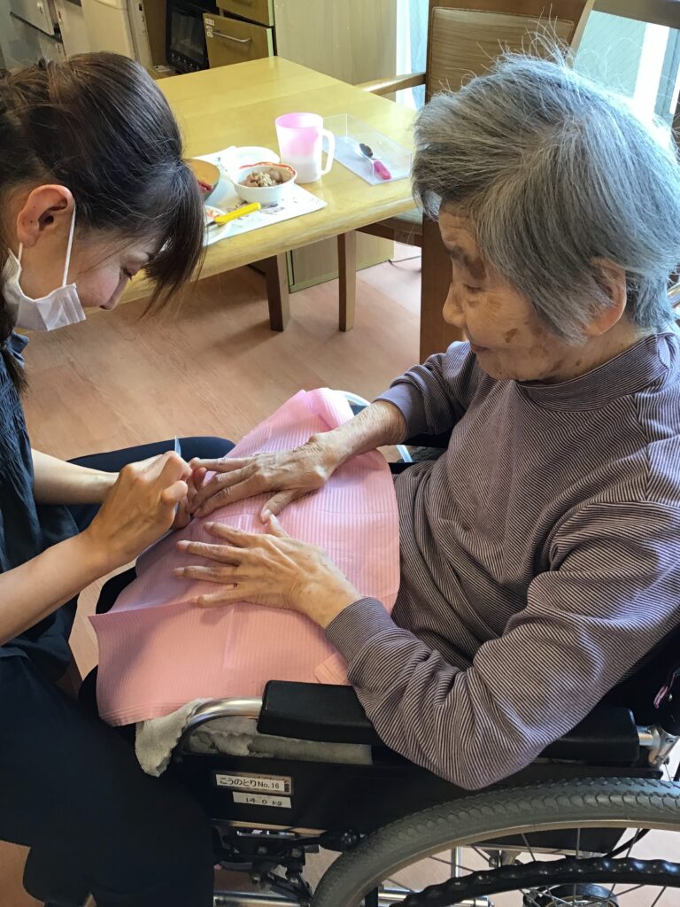 ご家族様もご自分も召し上がられながらも、入居者様の食事支援をして下さり「こういう時じゃないと出来ないので」とお手伝い下さり、いつも私たちが支援しているときよりも、心なしか嬉しそうにその方も笑っておられました。