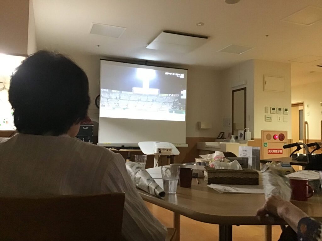 特養にご入居されておられる方方も共に観戦。周りに皆がいるため、応援にも熱が入ります!