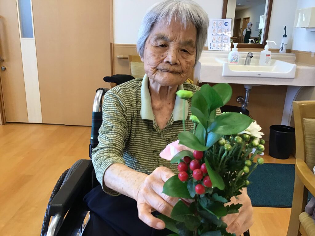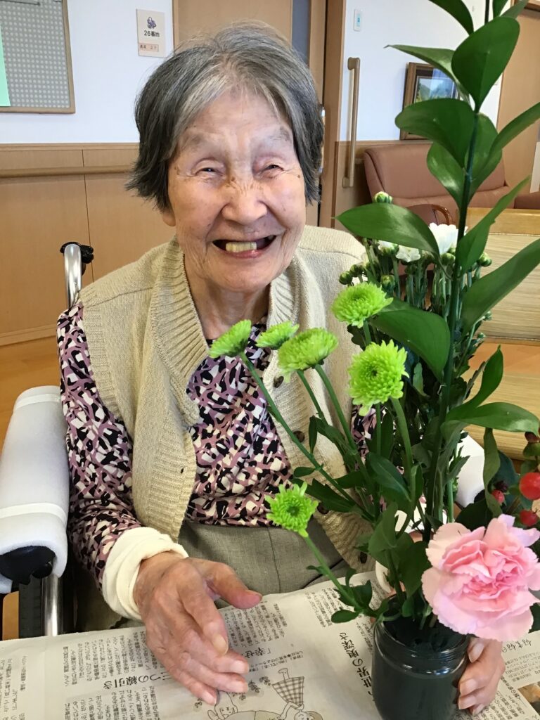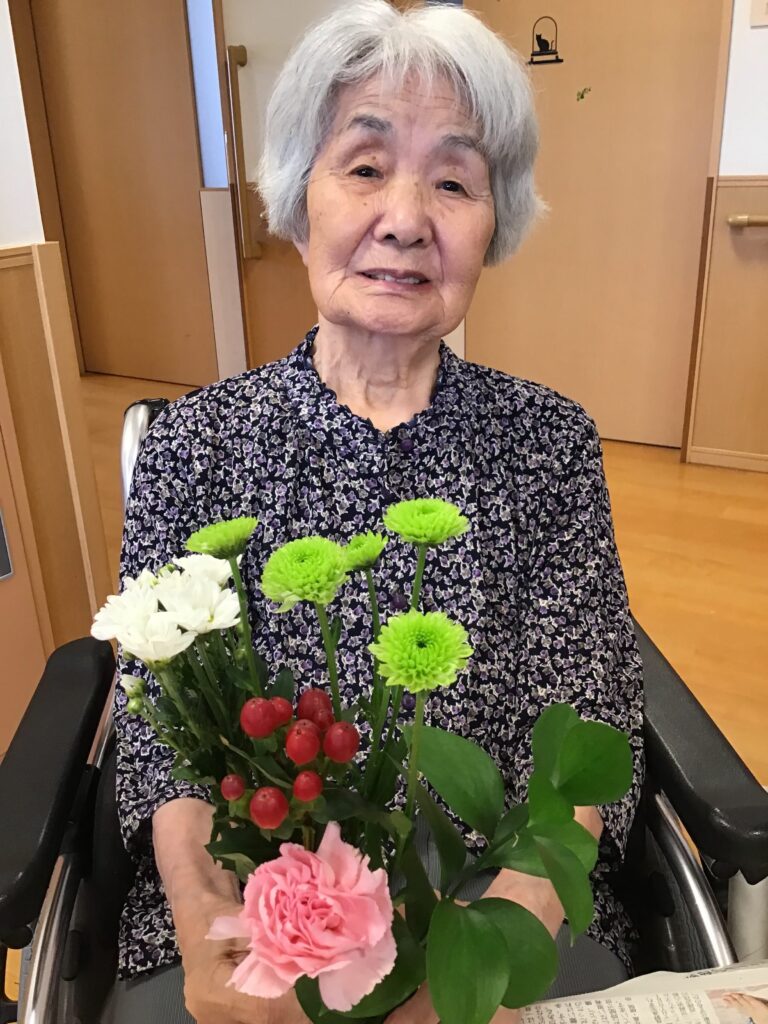毎月生けて頂いたお花もリビングや居室に飾っていますが、入居者様からは「お花がちょっとあるだけでお部屋がパッと明るくなっていいわぁ」「お花があるのとないのとでは、やっぱり気持ちが違う」とお声が聞かれ、入居者様の気持ちの充実にも繋がり、日々の支援の積み重ねが、少しでも居心地よい環境に繋がっている事を嬉しく感じるキャサリンなのです。