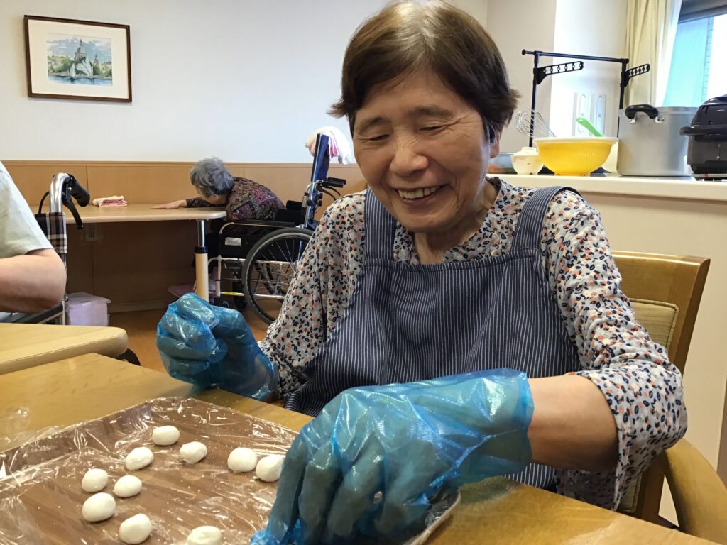 【9月29日 F様のお誕生日のお祝い】 昔はよく皆にお料理を振舞っていたT様。 長女様より、おしるこが好きでよく作ってくれていたとお話があり、おしるこ作りで楽しんで頂こうと企画。