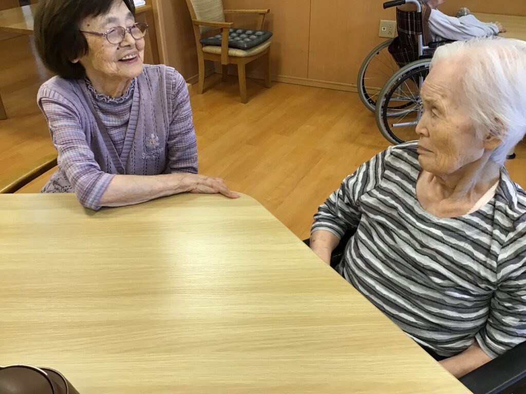 会話とまでは行きませんが、他の入居者様のお声掛けに頷かれたりしながら、穏やかに過ごされていたご様子。