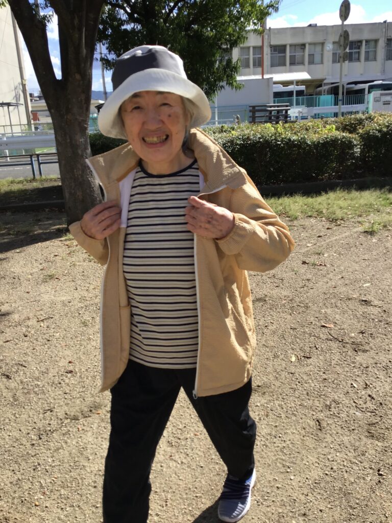 お散歩の日には必ずお誘いしているT様。いつも「ええやんかぁ。」「いくわぁ。」とお声が返ってきます。 この日は秋晴れでいつも以上に気持ちのよい散歩日となり、終始笑顔の絶えない時間となりました。