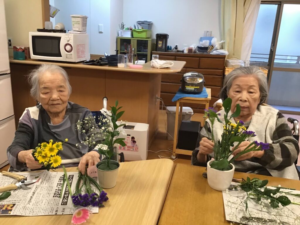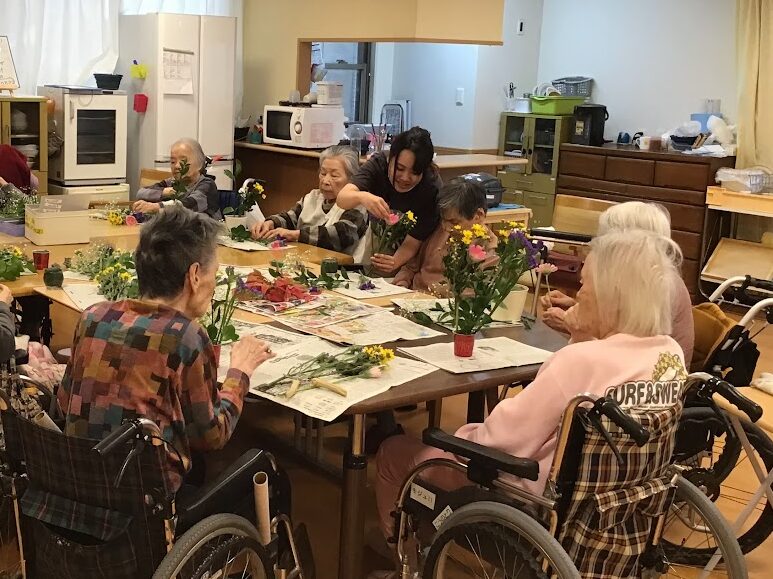 今月もにぎやかに行われた合同生け花(*^▽^*)