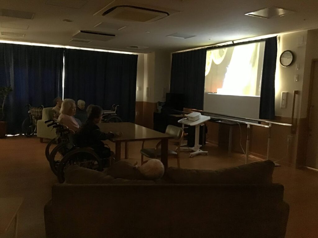 映画鑑賞会を定期的に行っていた所、理事長から「映画鑑賞会の会場のカーテン、遮光カーテンにしよう!」とご提案をいただき、より映画館の雰囲気作りを行う事が出来ました。