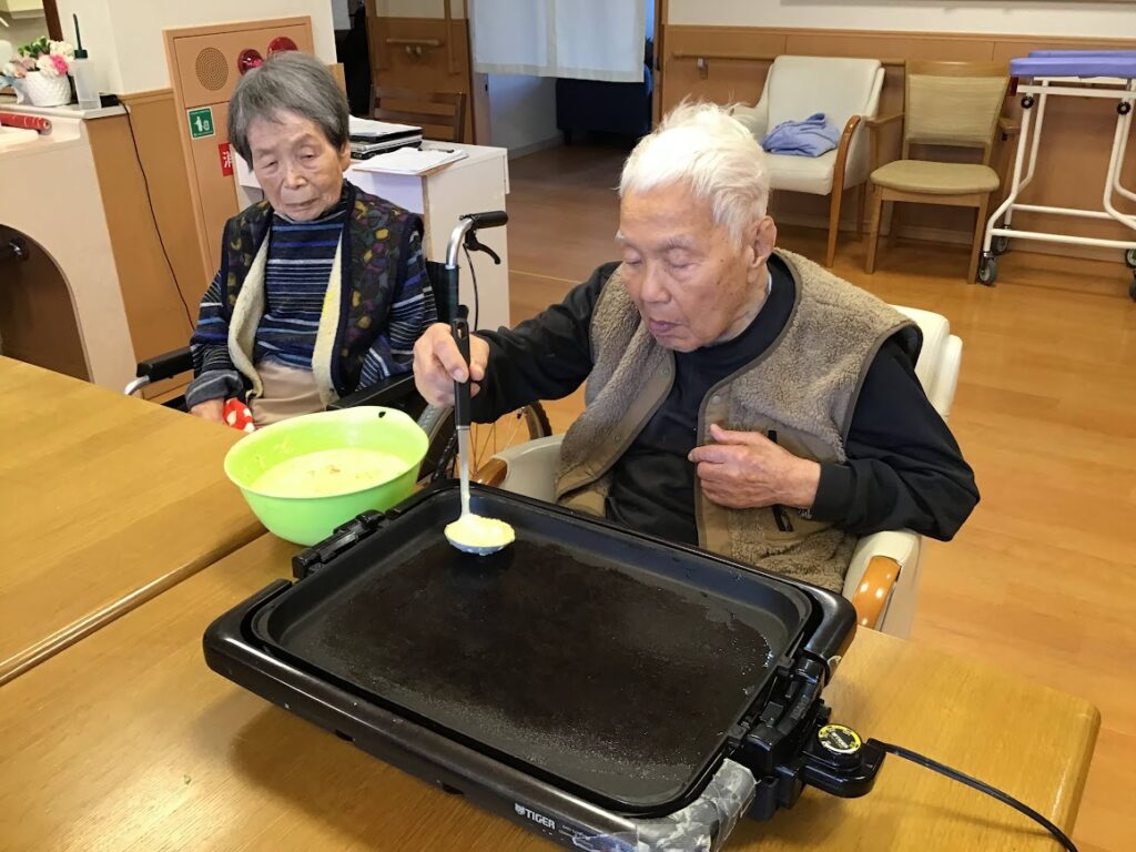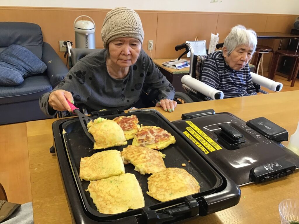入居者様のお誕生日のお祝いの為、本人様のご希望でお好み焼きパーティーを開催(*^^*)