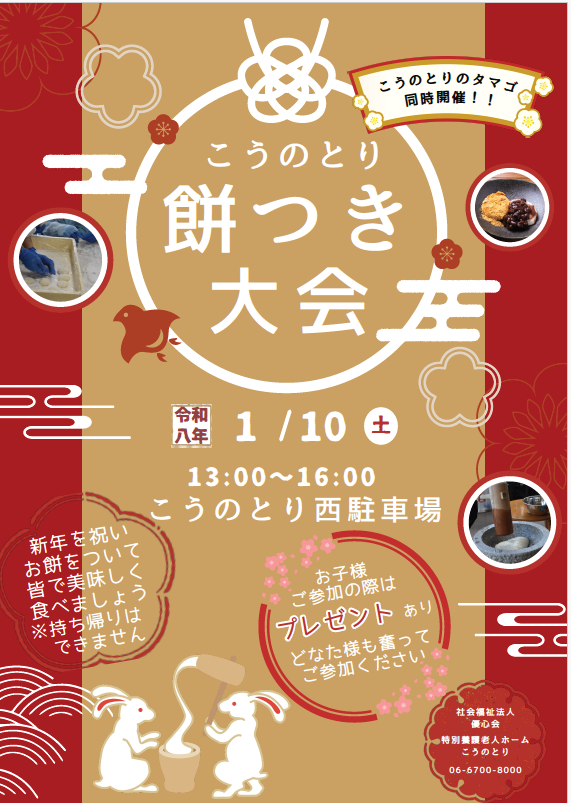 2026年1月10日(土)午後からやります!こうのとり餅つき大会!