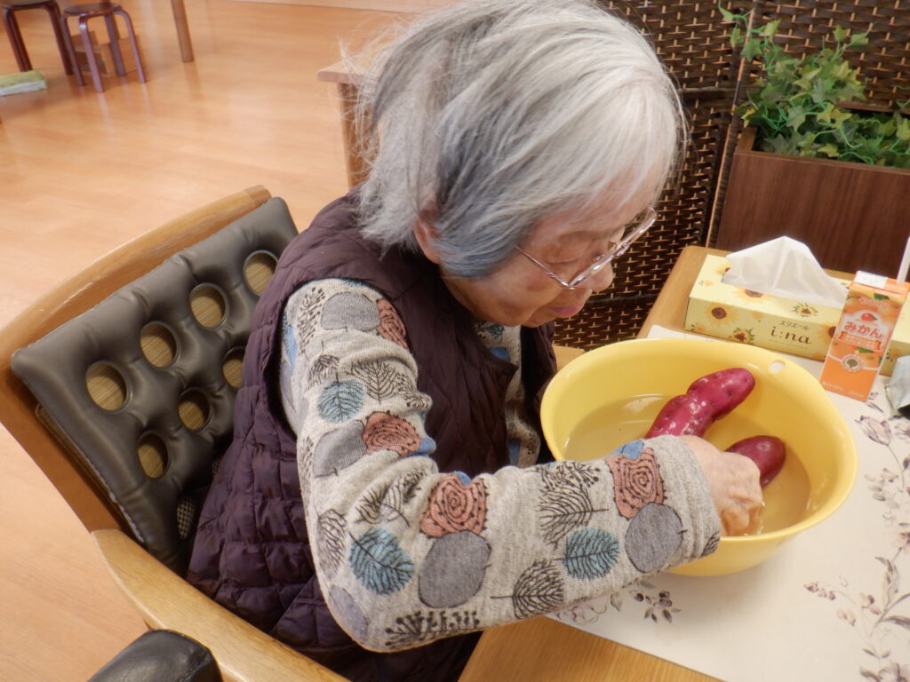 「昔は芋も家で育ててな。懐かしいわ」と、芋を洗いながら仰られたおばあ様