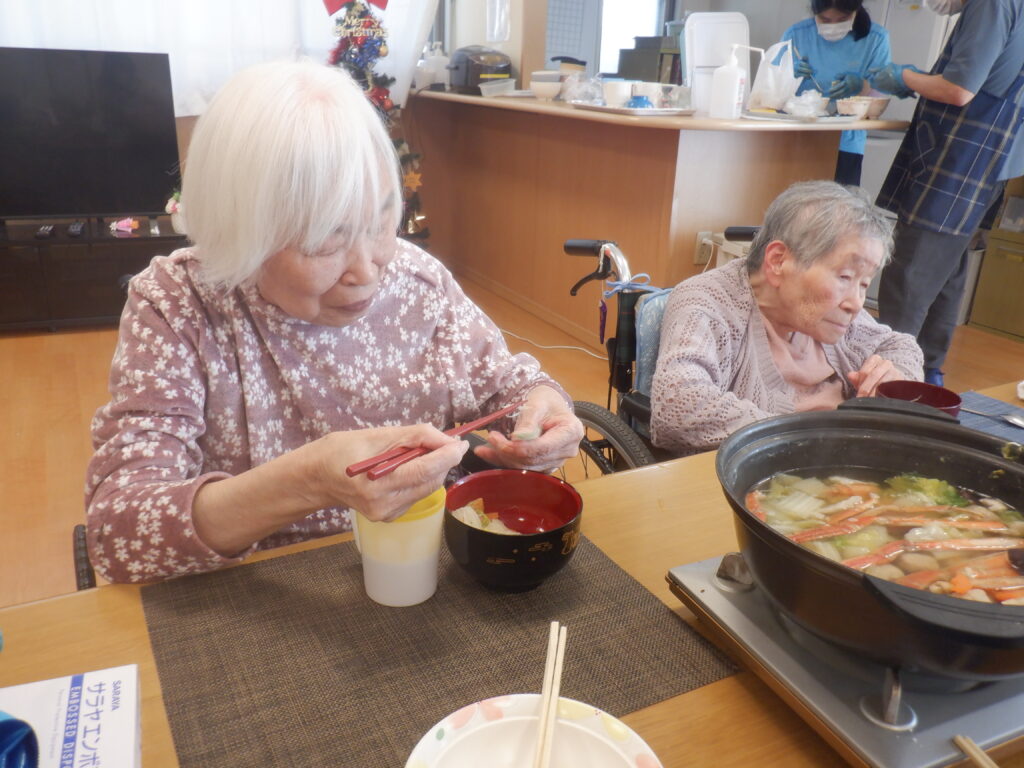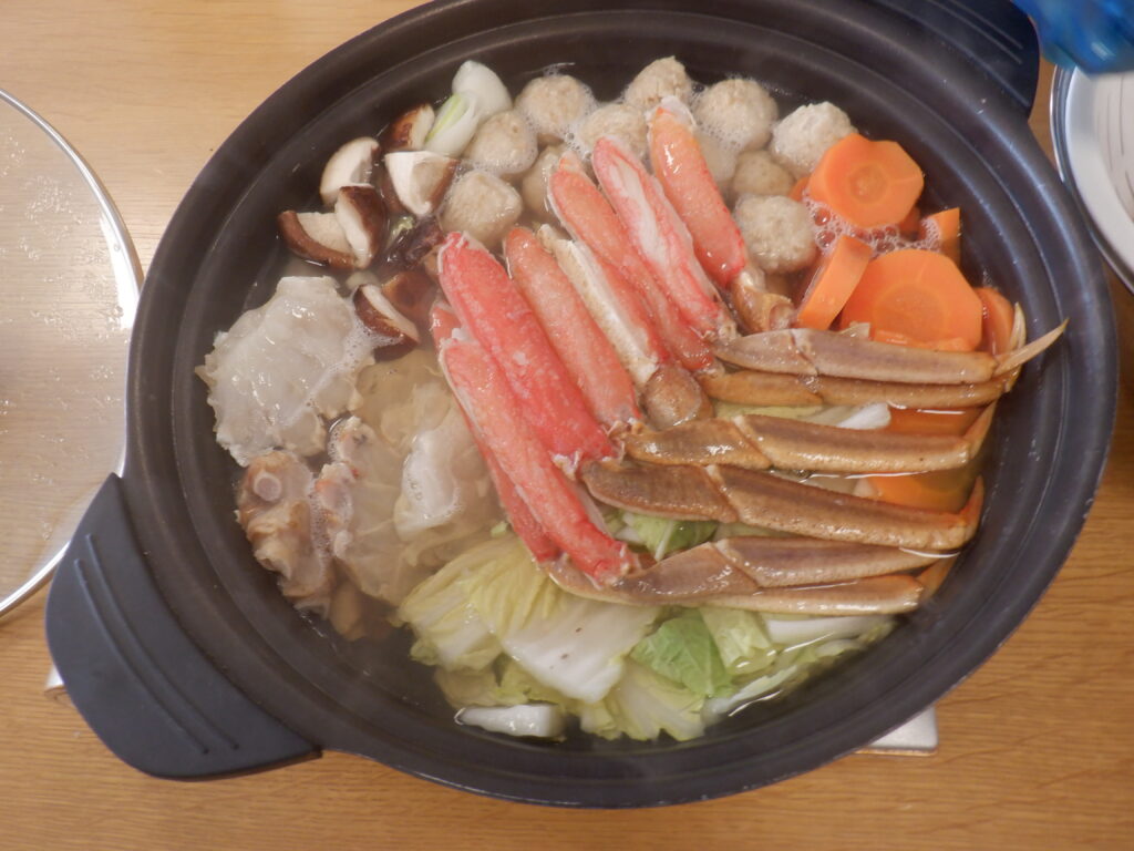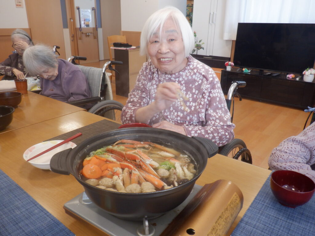 この日は5階すずらんにてカニ鍋を開催!ユニット中にカニの良い匂いが漂う中、皆様今か今かと煮えるのを待ちます。