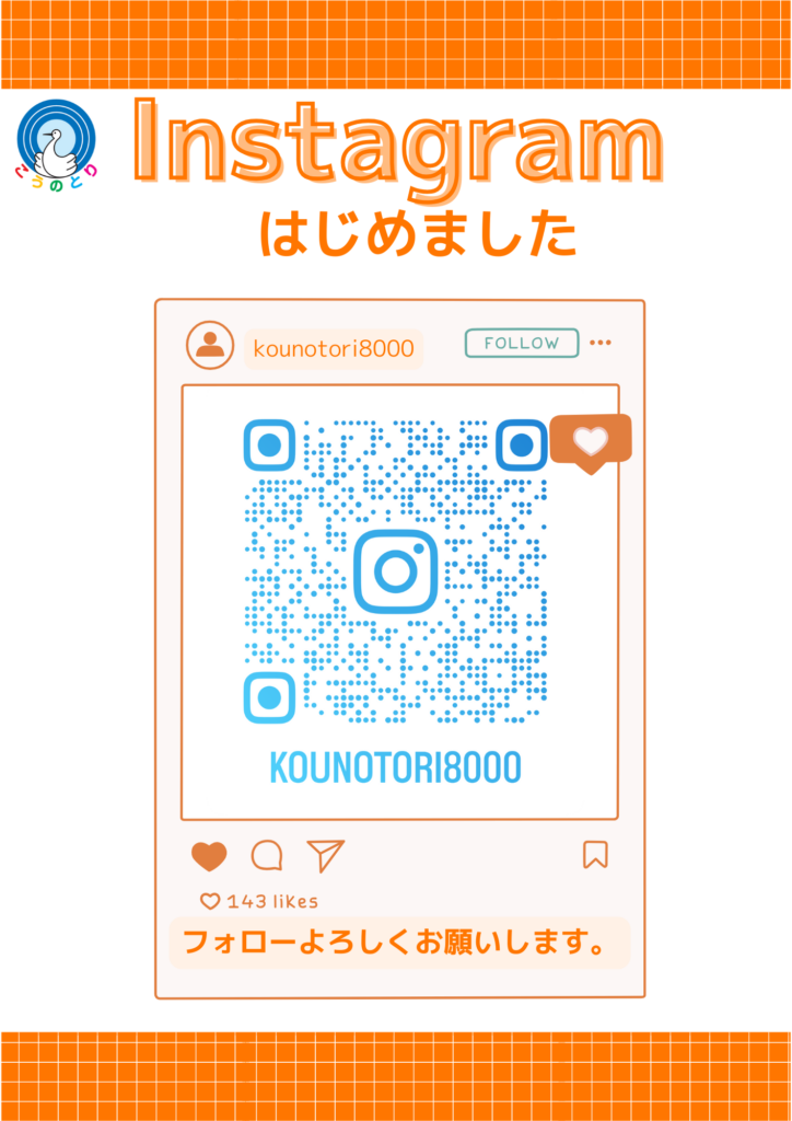 こうのとりが行っている日頃のご様子を、もっと多くの方に知って頂けないかと、今年から「インスタグラム」も本格始動しております。